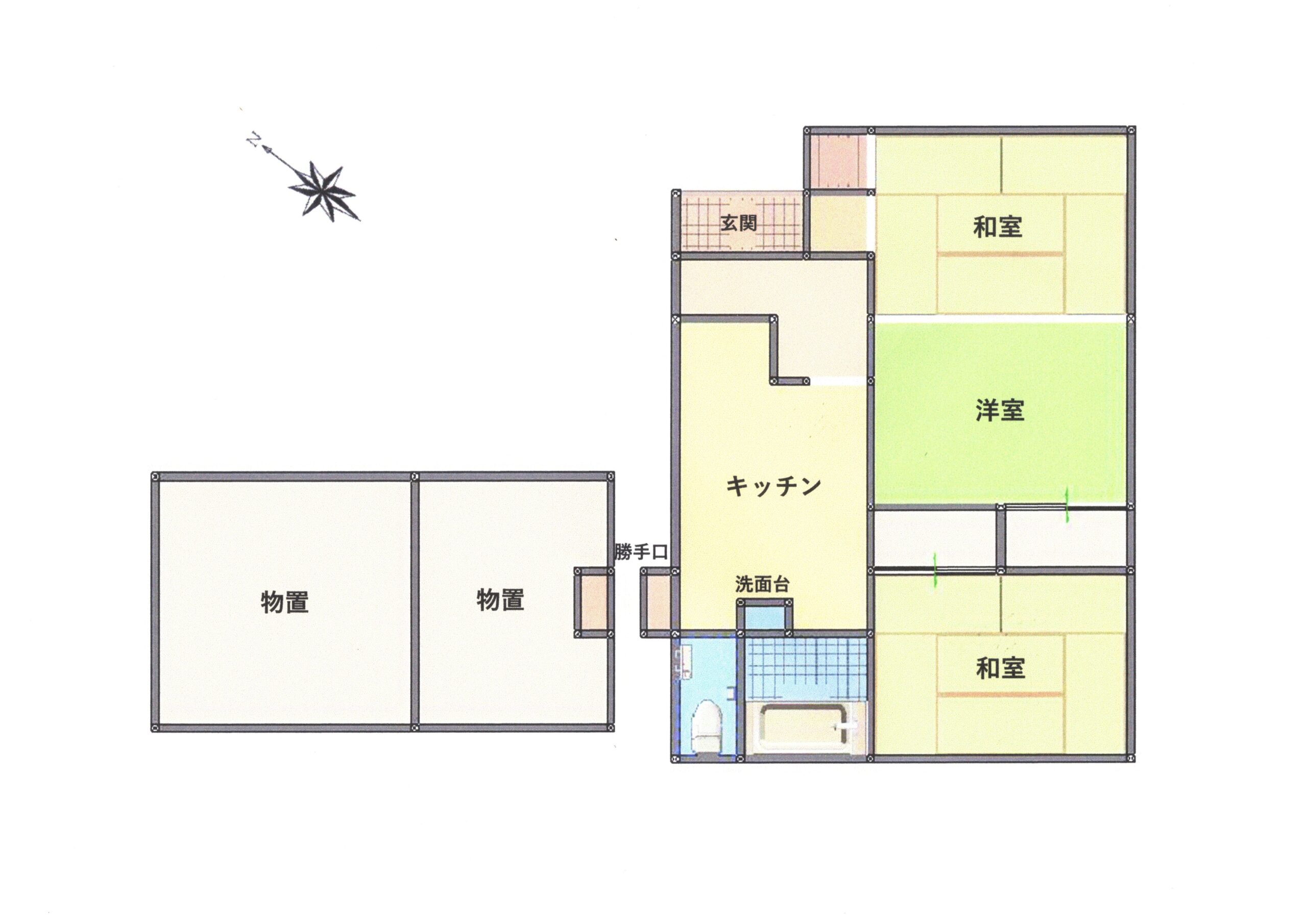 木造亜鉛メッキ鋼板ぶき平屋建て |