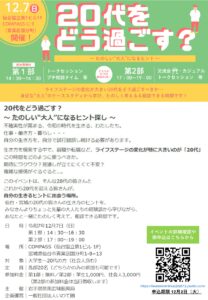このイベントは、20代の皆さんとこれから20代を迎える皆さんが、自分の生きるヒントに出会う場所。